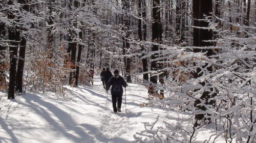 Február 21-én 9 óra előtt biztató napsütésben indultunk Gyöngyössolymosról a 20 km-esre tervezett túránkra. Az alacsonyabban fekvő részeken az olvadozó hóból folydogáló vizek átitatták a talajt, így 36 láb (a legkisebb 33-as méretű) cuppogva vitte magasabbra a csapatot. Egy megáradt pataknál az azon való átkelésnek különböző alternatíváit mutattuk be az átgázolástól a köveken szökellésen át az egyszerűbb hídépítési próbálkozásokig. Feljebb a Sástó környékén már télies, napsütötte tájon haladtunk, frissen esett hóval hintett bokrokkal és fákkal. A tó mellett épített kilátó – (el)tévedésből eredően – a csapat egy részét magához vonzotta, melyről szépen látszott a Kékes havas hegyoldala is. Ott, a csomagolt szendvicsek hátizsákból a pocakba való átrendezése után, ismét egyesültünk a ránk várakozókkal és együtt tapostuk a havat Mátraháza irányába, közben hópamacsok potyogtak a napsütötte ágaktól, meg néha parabolapályát leírva nagyobb gömb formájúak is. Visszafelé menet a Gyöngyös-patak leterelt minket a turistaútról, mivel az a gázlónál akkor inkább dübörgött, mint csobogott, így követve annak vonalát inkább lejjebb csatlakoztunk rá a víz túlsó oldaláról visszatérő turistaútra. A kocsikhoz visszaérkezve deréktól lefelé, a külső vizes-sáros réteget és az átázott zoknikat lefejtettük a gyerekekről, de ők sem panaszkodtak, mert egy igazán szép napunk volt. Dani műszeres mérése szerint 22 km-t tettünk meg.