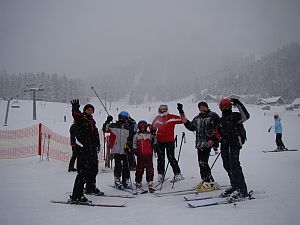 Mindössze tizenketten, ámde annál nagyobb lelkesedéssel indultunk csütörtökön reggel Ausztria felé. Négyórás utazás után érkeztünk meg az alsó-ausztriai Wienerbruckba. Hóból nem volt hiány, hiszen a környéken már két hete folyamatosan havazott, és a következő négy nap alatt sem maradt abba, egy percre sem. Szállásunk egy 1654-ben, postakocsik számára épült fogadó volt. Eredetiségéről meggyőzödhettünk egy gerendába vésett évszám, valamint a rettenetesen nyikorgó fafödém alapján. A zord idő ellenére, délután már Annaberg sípályáit hódítottuk meg. Barátságos házigazdáink, akik egyébként honfitársaink, bőséges vacsorával vártak. Este még egy kis beszélgetés, társasjáték után ki-ki nyugovóra tért. Másnap, több mint kétméteres hófalak között vezetett a kanyargós, és csúszós út Mariazellbe. Egész nap síeltünk. Sajnos Árpi egy szerencsétlen esés következtében balesetet szenvedett. Este kártyáztunk, ping-pong forgóztunk. Szombaton ismét Mariazellben, a Bürgeralpe lejtőin síeltünk. Délután megnéztük a város nevezetességét, a kegytemplomot. Rövid értékátadásomban, különösen a magyar vonatkozású emlékekre hívtam fel a figyelmet. Vasárnap reggel, miután sikerült autóinkat a hó alól kiásni, a csapat egyik fele hazaindult, a másik fele még délelőttre felcsatolta a síléceket, kihasználva az utolsó lehetőséget is. Örülök, hogy a balesetet leszámítva, nagyszerűen sikerült az első egyesületi sítúra. Gratulálok Boginak, Anitának és Misinek, hogy megtanultak síelni. Krisztián, Andris és Marci a fekete pályán tökéletesítette sítudását. A lejtő ördöge, vitathatatlanul, Gyuri volt. Remélem, Gábort, Gabit és Ricsit a kerékpártúráinkon is viszontlátjuk majd. Árpinak a lábtörés nem szegte kedvét, a jövő télen ismét síelni akar. Rajtam nem múlik, jövőre is szívesen megszervezem. Móni |