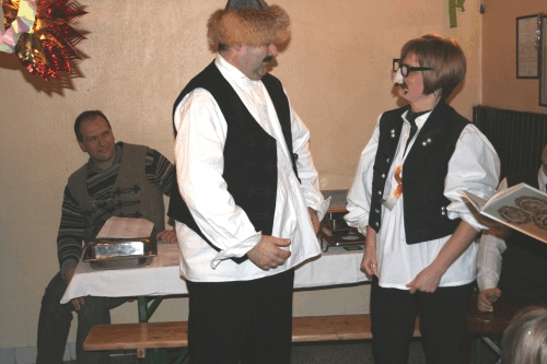 Kiváló helyszínen, a maglódi Fábry kocsmában örültünk, hogy végre vége ennek a pocsék 2008-nak, és próbáltuk jobban előkészíteni 2009-et. Nem tartozván az alapító tagok közé, a társaság tagjait még nem ismertem a bulizós oldaláról. A fórumot olvasgatva azonban sejtettem, hogy jól fogok szórakozni. Nem is csalódtam. A helység kalapácsa előadása nálam bingó volt, ha szabad ilyen profánul fogalmaznom – bár lehet, hogy nyelvművelő barátaim megköveznek érte. Élvezet volt, hogy a csepűrágók milyen komolyan vették a játékot előkészületekben: jelmezben és kellékekben, no meg magában a játékban. Persze, a szöveg se volt kutya.